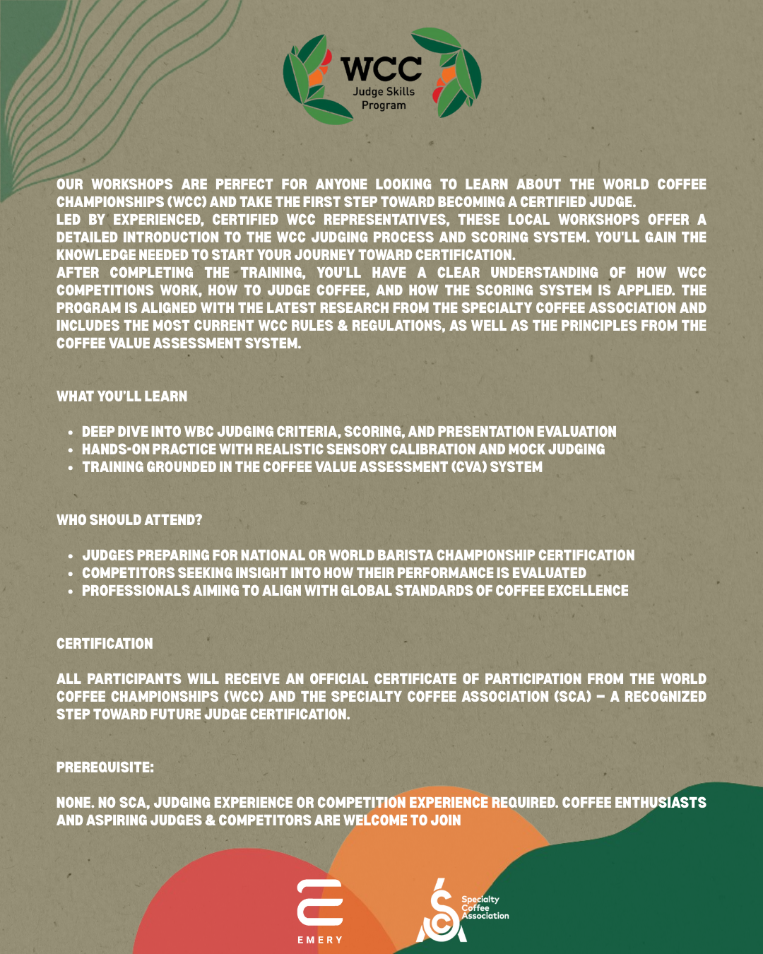 Emery School of Coffee a variety of coffee courses to meet the different needs of leisure learning, industry training, competition preparations & professional certification pathways